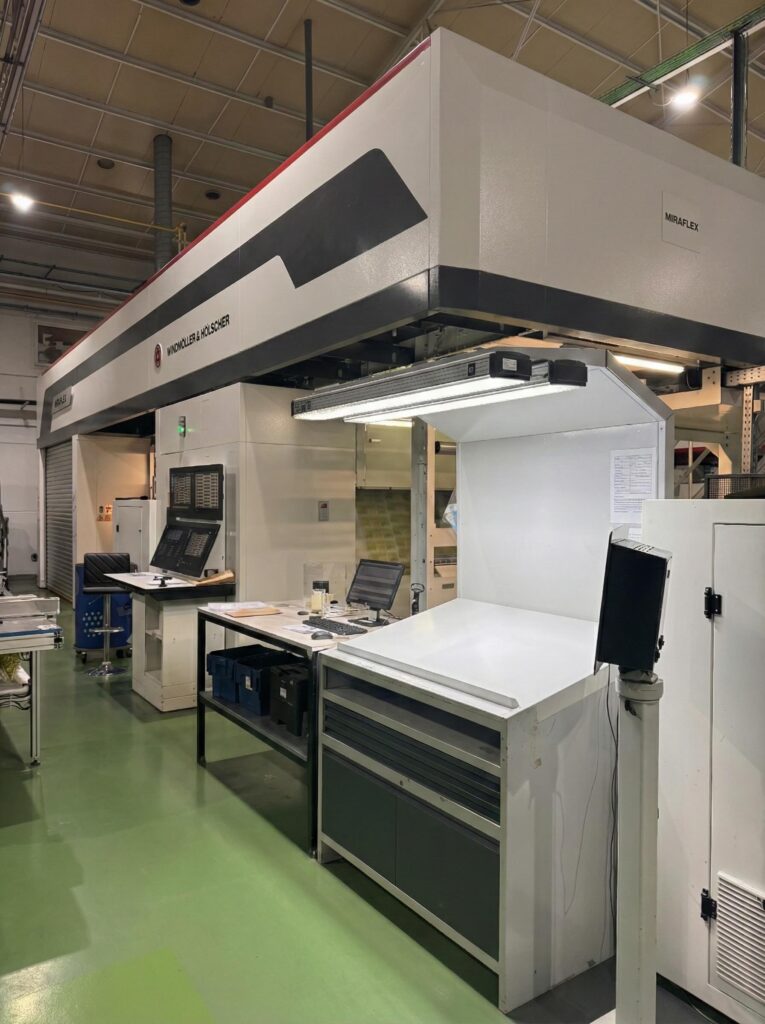 Por su parte, la MIRAFLEX II es la incorporación más reciente a nuestro parque tecnológico, representando un salto cualitativo en automatización, ergonomía y eficiencia energética. Además de ofrecer una calidad de impresión sobresaliente y tiempos de cambio optimizados, incorpora la posibilidad de lacado en línea, lo que nos permite añadir valor al envase en el propio proceso de impresión, optimizando tiempos y mejorando el acabado final del producto.